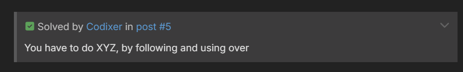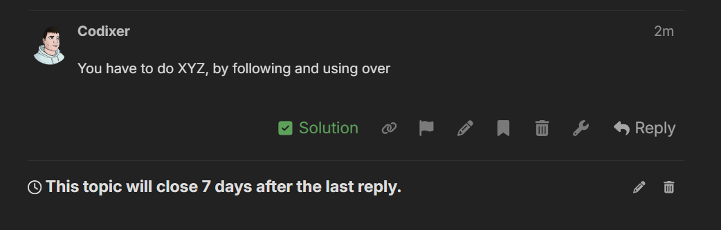 Lets say someone provides you with a solution for your issue. Instead of people having to search half your thread for a response to your awnser. We encourage you to use the “solution” button to clarify your issue was solved by the person in question. This helps us by sorting out the “I have an issue and could never solve it” between the “I have an issue and this is how it was solved”.