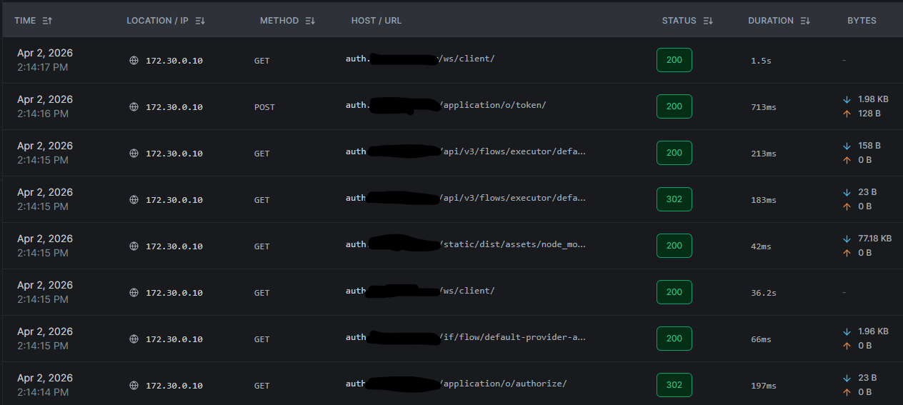 These are incoming requests to the Authentik instance behind the Proxy. But, this would apply to anything I choose to expose via Netbird Proxy. I would like to be able to keep an eye on the request logs, including taking a look at the client IP address.